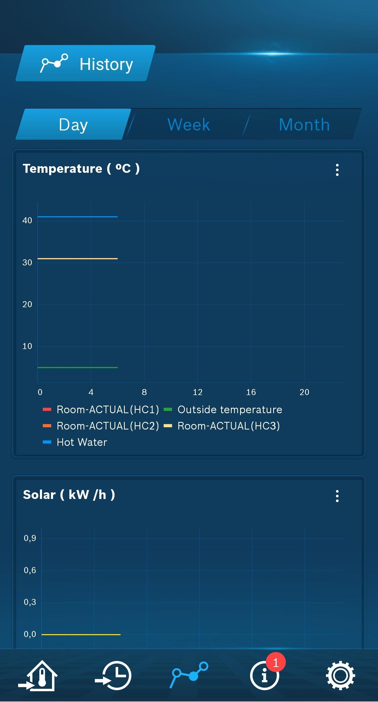 - Graphical display of the solar yield from your thermal solar system in the overview for the cur-rent day or month.