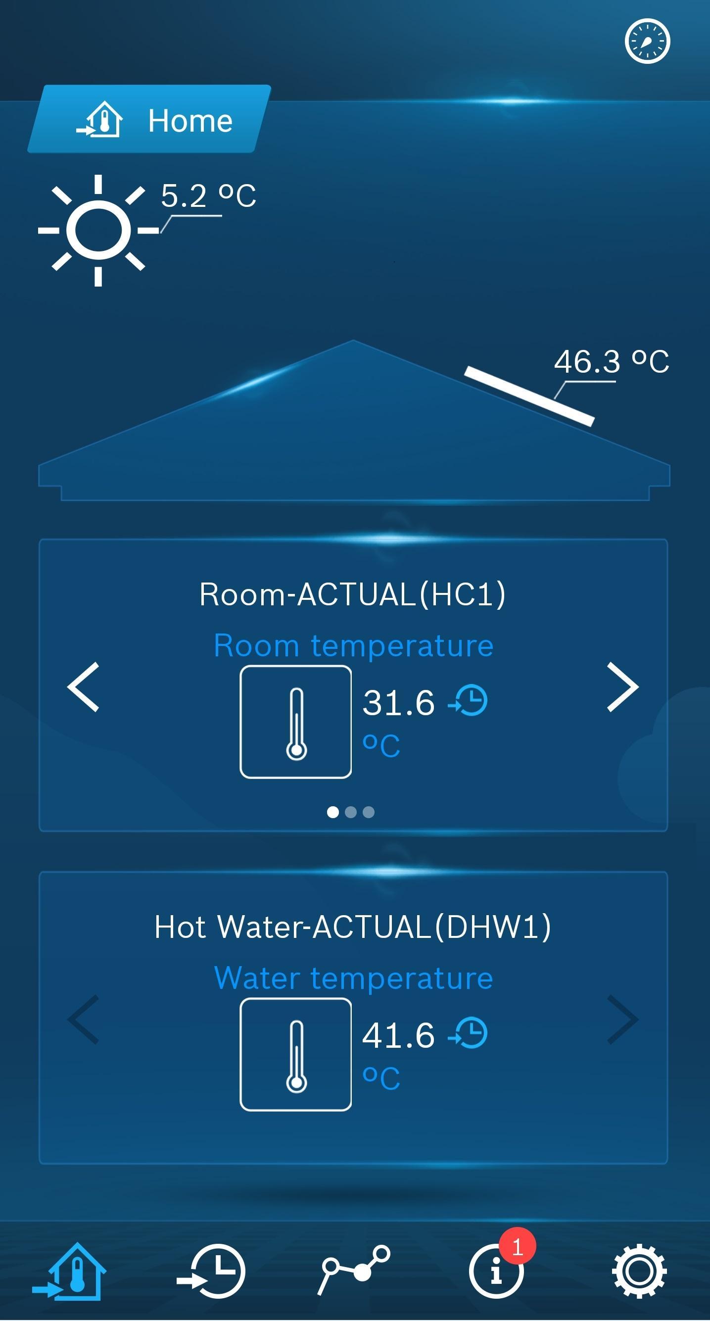 - Graphical display of the room and outside temperature curves in the overview for the current day, week or month.