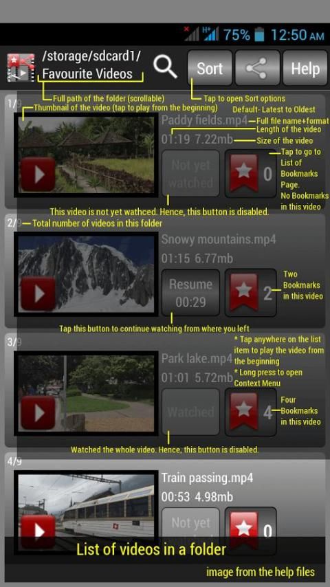 ♦ Автоматически обнаруживает видео в памяти телефона и карты памяти SD и перечисляет их со всей важной информации ясно, что позволяет быстро находить и воспроизводить видео.