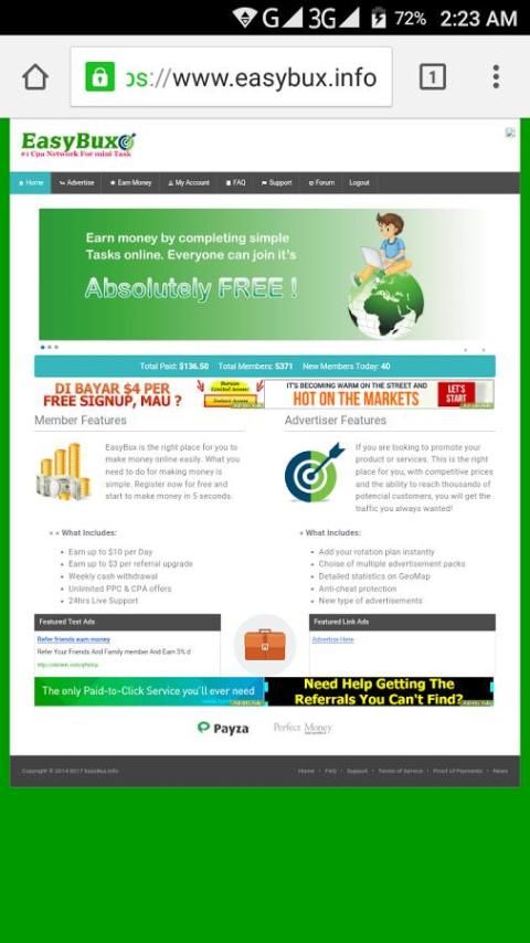 Регистрация EasyBux.info бесплатно сейчас и начать зарабатывать наличные деньги для вашей деятельности в Интернете,