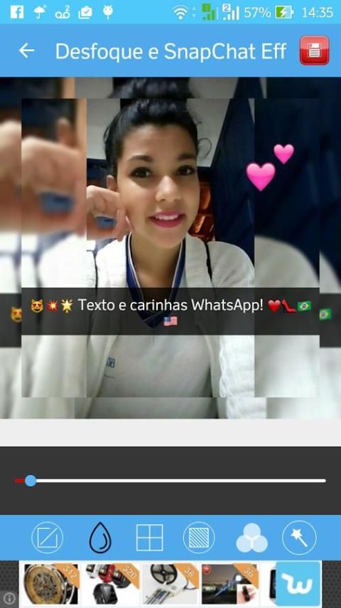 Применение для вас, чтобы написать в фотографиях Место Carinhas эффекты равных в Snapchat.