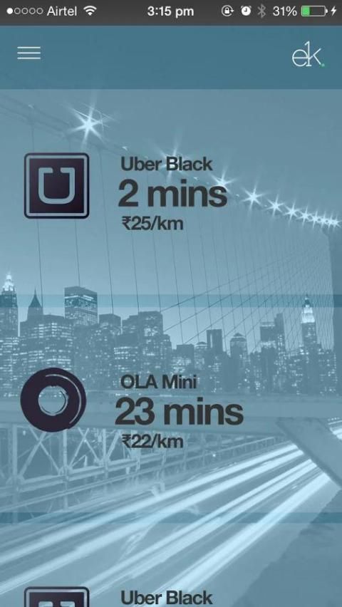 Благодаря обширной экосистеме приложений с поддержкой услуг бронирования такси, человек сегодня не обязательно должны иметь транспортное средство. Эк служит простой утилитарной приложение идеально подходит для людей, которые используют приложение-услуг такси для их повседневной коммутируют. Наша цель с Ek было создать простой, без трения приложение, которое помогает пользователю добраться из точки А в точку Б в наименьшее количество времени, независимо от города, страны и обслуживания. Мы в настоящее время поддерживают услуги по всему миру, в том числе Uber, коляской, Hailo, Ола, Меру, GETT, маховик, TaxiForSure и BiTaksi. В течение следующих нескольких версий ролл-аутов, мы будем добавлять несколько новых интересных возможностей, мы работали на, а также более такси со всего мира. Для получения более подробной информации вы можете посетить www.ekapp.co