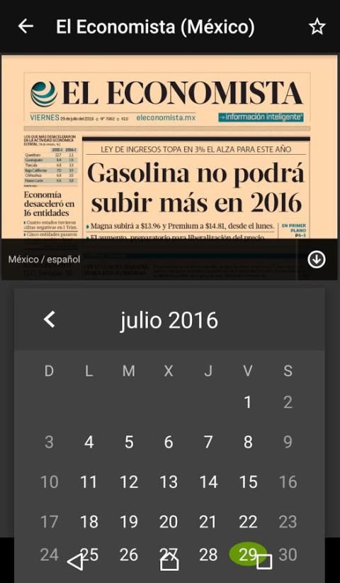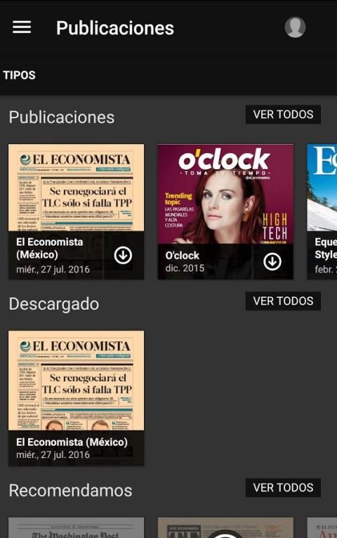 Проверьте печатные издания The Economist, лидер в области бизнеса, экономики и финансов Мексики. С понедельника по пятницу издание, экономический термометр, автомобильной, стратегии, туризма, кредитных союзов, Автомобили и The Washington Post. Доступ роскошные журналы Horloger, Конная и O'Clock.