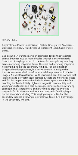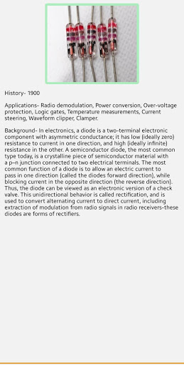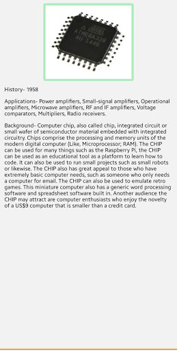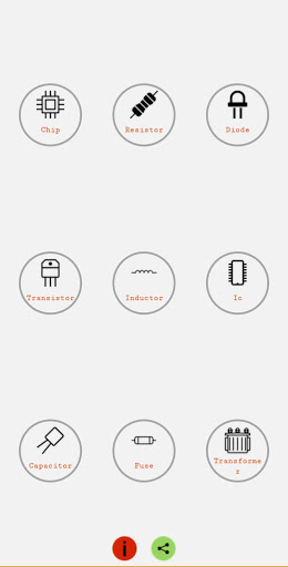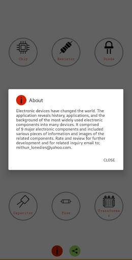 This is an informative application of electronic components such as Ic, Diode, Register, Transformer, Chip, Transformer, and so on. Rate and review for further development.