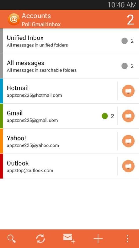 Установить это новое и уникальное приложение электронной почты для мгновенного доступа к любому поставщику услуг электронной почты (Hotmail, Yahoo, Outlook, ICloud, AOL, Живая, GMX, Gmail) вы можете иметь один или несколько счетов в одном месте с нашими Единый почтовый ящик, более 10 учетных записей электронной почты в то же время! с этим приложения электронной почты вы всегда будете информированы о том, что происходит в вашей электронной почте со звуками уведомлений и оповещений вибрации. Мы также совместимы с любым типом почтового ящика IMAP, POP3 и обмена. Что вы ждете, чтобы загрузить это приложение ?.