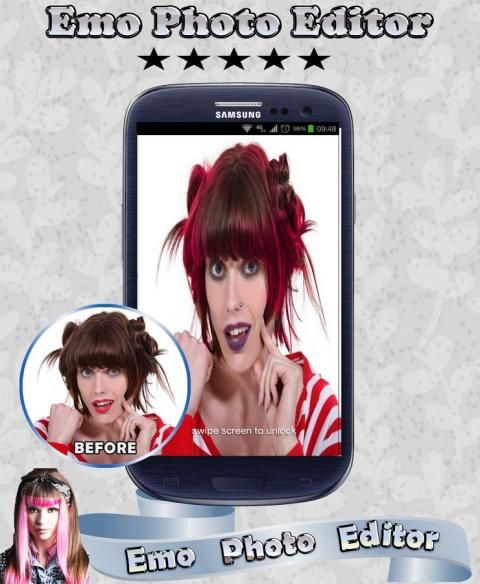 Мы думали о простом решении выпущенном Нашего макияжем artists.Emo Editor является лучшим редактор изображений, который предлагает вам сейчас много мило наклеек как (кольцо, серьги, браслет, ожерелье, серебряные кольца, серебряные браслеты, и т.д ...) и лучшие волосы эм мальчик, чтобы добавить их к вашему Insta фотографии и создать