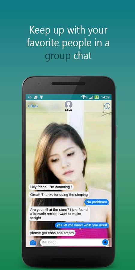 Emoji Посланник бесплатное приложение обмена сообщениями для iPhone и теперь доступны для андроид устройств. Emoji IMessenger использует подключение к Интернету вашего телефона (4G / 3G / 2G / EDGE или Wi-Fi, как доступный), чтобы позволить вам сообщения друзьям и семье. Переход от SMS на Посланник Emoji, чтобы отправлять и получать сообщения, звонки, фотографии, видео и голосовые сообщения.