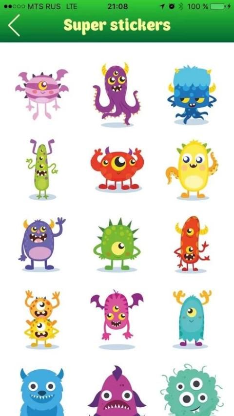 Вам не придется скучать с большим набором смайлов и стикеров в приложение! Вы можете выбрать смешные лица, забавных монстров, стикеры с едой, а так же стикеры с милыми котятами, веселыми собаками и другими животными.