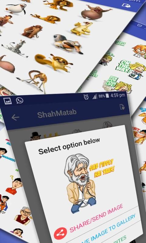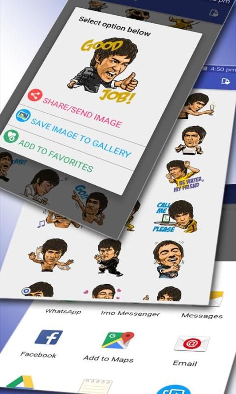 - Нажмите на Share / Отправить изображение и выберите WhatsApp или Facebook во всплывающем окне диалога (если уже установлен) и отправить наклейку на вашей дорогой друг.