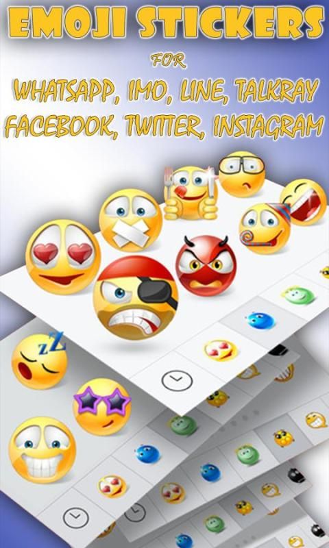5000+ Free Emoji Наклейки для ваших любимых мессенджеров например WhatsApp, WeChat, IMO, линия, talkray, facebook, твиттер, instgrm. Вы будете действительно наслаждаться, чтобы выразить свои эмоции с помощью HD и 3D SMILY и особенно Talking наклейки. Большой, чтобы произвести впечатление на своих друзей и семьи с помощью этой удивительной коллекции Emoji наклейки.