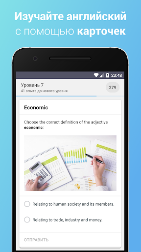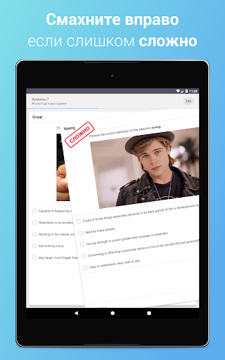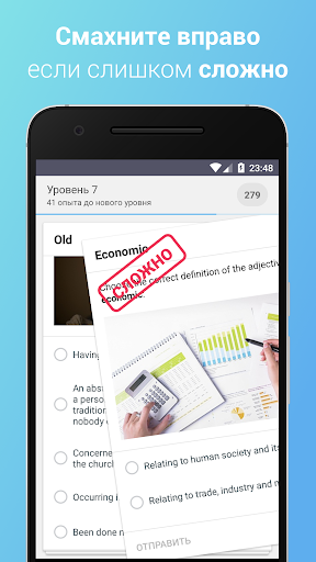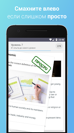 Обратите внимание, что система сама будет автоматически подбирать вам вопросы, учитывая уровень знаний. Вы можете ей помогать, отмечая, какие вопросы оказались для вас самыми лёгкими, а какие слишком сложными - достаточно смахнуть карточку с вопросом.