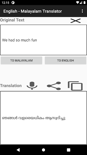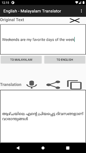 Learning Malayalam or visiting a Malayalam speaking country? Ease your learning/communication by translating any English or any other language word/sentence to Malayalam.