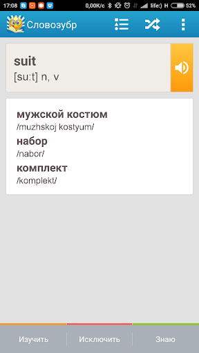 Английский Словозубр содержит слова из разных сфер жизни, объединенных в категории, что позволит вам учить в первую очередь те английские слова, которые вам наиболее интересны. В дополнение к уже встроенным в приложение словам, вы сможете самостоятельно вносить новые, добавляя их перевод и транскрипцию. А функция отображения статистики даст вам возможность следить за вашим прогрессом в изучении.