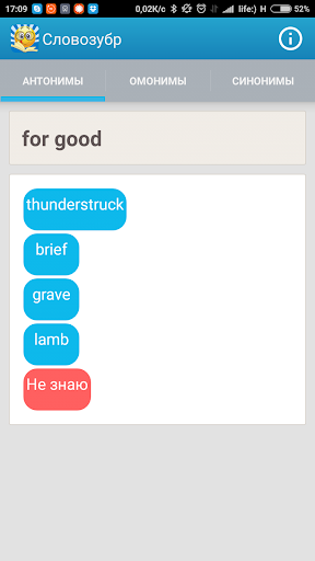 Разработчики приложили максимум усилий, чтобы создать удобное и интересное приложение, которое будет приносить пользу и удовольствие. Устанавливайте Английский Словозубр на свой телефон, он поможет вам быстро выучить английский язык с нуля, занимаясь в любое время и в любом месте, будь вы в отпуске на пляже, в обеденном перерыве на работе или дома перед сном.
