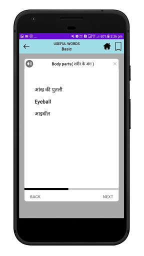 Начните с изучения самых основных слов, фраз и предложений, а затем перейти к более высоким уровням. Приложение поможет вам не только с изучением хинди - английский (हिंदी