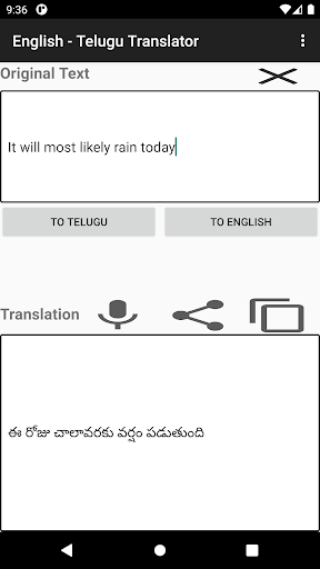 перевести любой Telugu Word / предложение на английский.