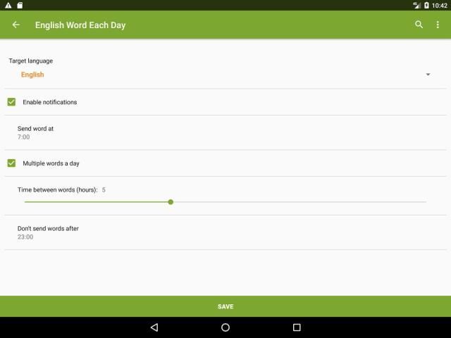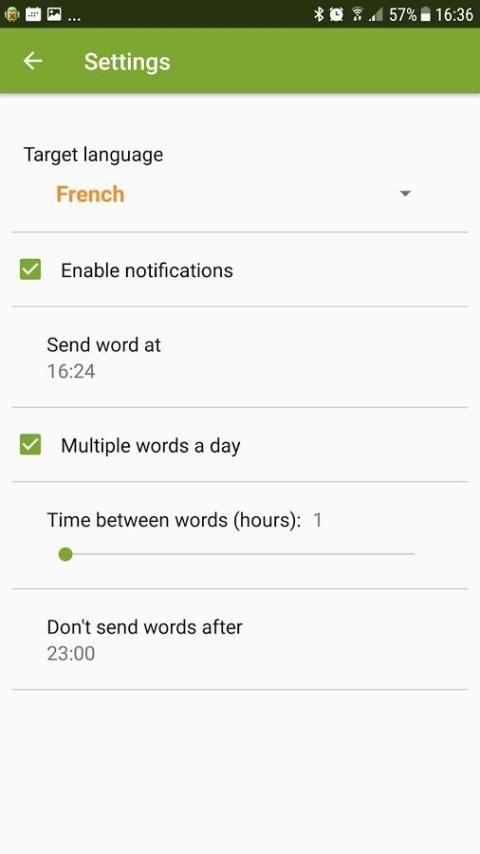 Вы можете выбрать желаемое целевого языка и на какой язык переводить ежедневное слово.