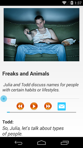 Download audio offline and listen to English with stories or conversations.
