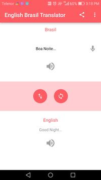 Translate English to Brazil and Brazil to English with this FREE app. It can translate text, words and sentences in split seconds. It is used for words meaning and accurate pronunciation.