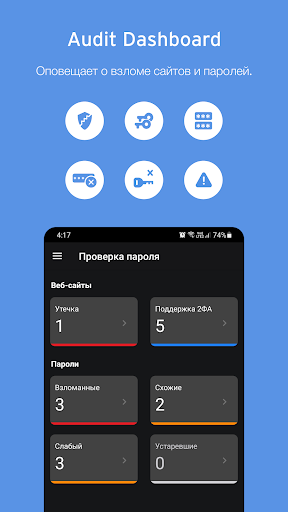 ✔️ Проверка пароля- Находит слабые, старые и украденные пароли.