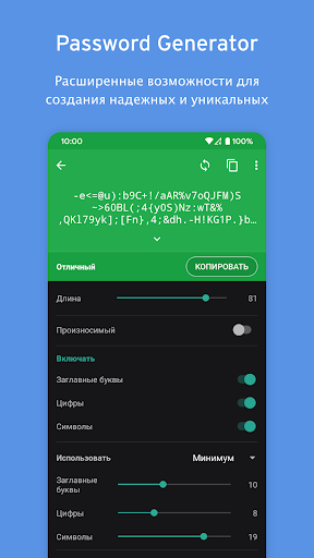 ✔️ Мощный генератор паролей- Встроенный генератор паролей для создания уникальных и надежных паролей.