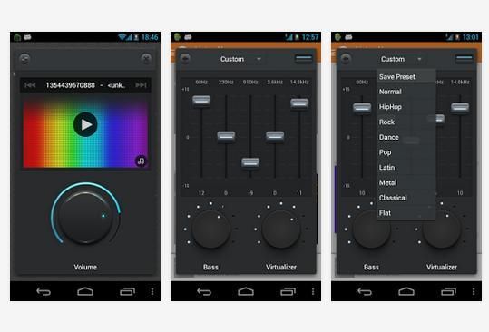Эквалайзер позволяет регулировать уровни звукового эффекта, так что вы получите лучшее из вашей музыки или аудио из телефонной розетке. Применить настройки эквалайзера на основе музыкального жанра, или быстро создать свой собственный пользовательский пресет с 5-полосный эквалайзер контроллера. Дополнительные звуковые эффекты Поддерживает следующие: Bass Booster, Virtualizer и Reverb пресеты.