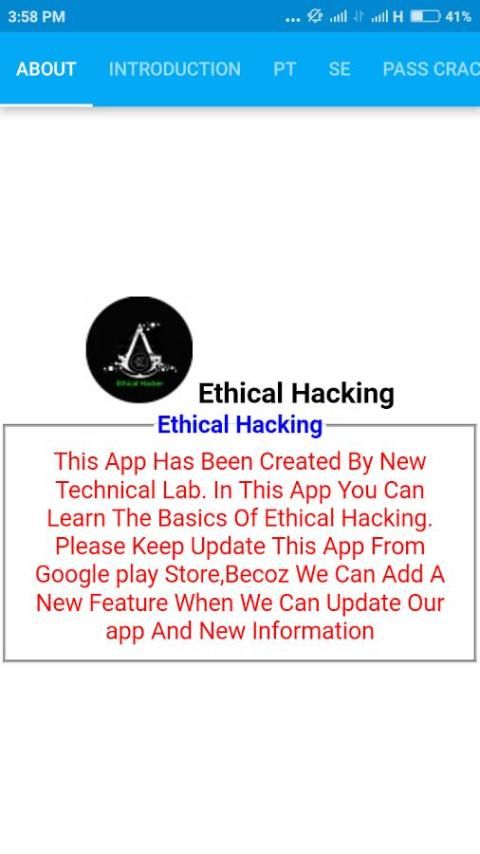 Там вы можете получить АПК приложений для андроид, установленный на вашем устройстве. 20,000+ пользователи скачали последнюю версию Ethical Hacking в 9Apps бесплатно каждую неделю! Пользователь хочет пользоваться приложение, которое не только имеет хорошее качество, но и быстро открывается в любое время. Это горячее приложение было выпущено в 2017-07-15. Приходи и скачивай его сейчас!