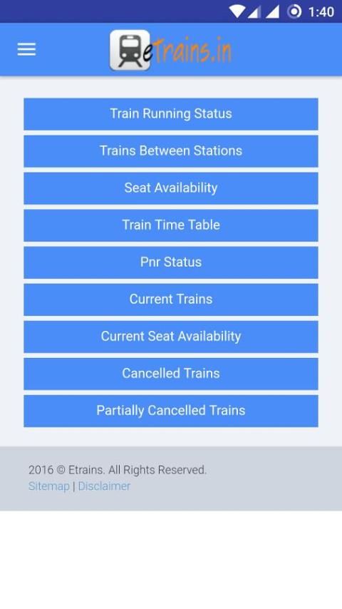 Это частное приложение, и не связанно с CRIS, NTES или IRCTC и не имеет никакой связи с Индийскими железными дорогами, правительством. Индия или правительства. Железнодорожные сайты в любом случае. Все содержимое доступно на этом сайте только для информационных целей и предназначена только личного некоммерческого использования.