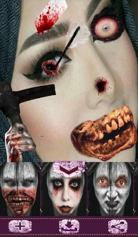 Начните заразить своих друзей с этим злом зомби. Используйте наш зомби макияж эффекты и конвертировать кого-либо в зомби ужасов. Есть много различных эффектов ужаса. Быть мертвым ходунки и напугать народы вокруг вас. Это ужас редактор фото стенд, который очень страшно зла и пугают