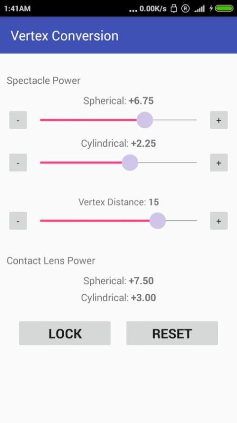 Полезно для оптометрист, оптиков, глазной врач преобразовать очковых Предписание Глаз, чтобы для контактных линз по рецепту. Включает в себя преобразования как сферические и цилиндрические мощность Зрелища к значениям для контактных линз.