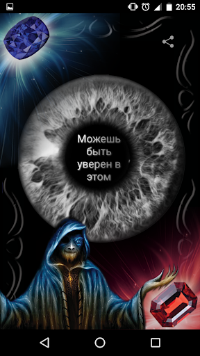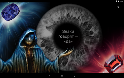Приложение носит развлекательно - игровой характер! Разработчики программы "Магический глаз" не несут никакого вида ответственности за любого рода высказывания, действия или поступки, совершенные пользователями, основываясь на ответах данного приложения. Устанавливая приложение "Магический глаз" пользователь возлагает всю ответственность на себя за принятие окончательного решения и последствий связанных с ними.