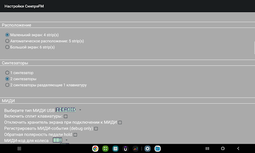 - поддержка MIDI на основе библиотек Android для работы с большим количеством контроллеров MIDI.