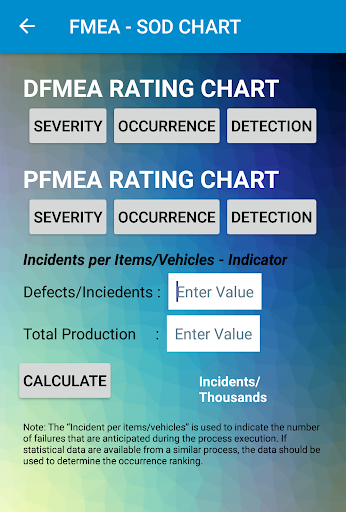 App keeps you handy with the SOD Evaluation chart for DFMEA & PFMEA