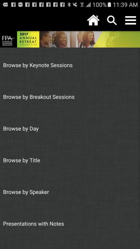 FPA Годовой Retreat 2017 мобильное приложение позволяет просматривать расписание, спонсор, динамик и деталь участника из события. Пользователи могут делать заметки примыкающих доступные слайды презентации и рисовать прямо на слайдах внутри приложения. Пользователи также могут создавать собственные графики в разделе Мой план.