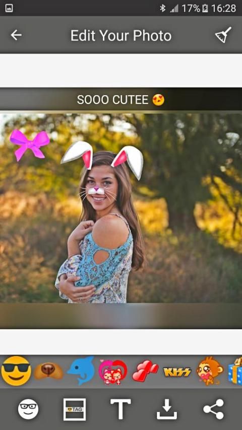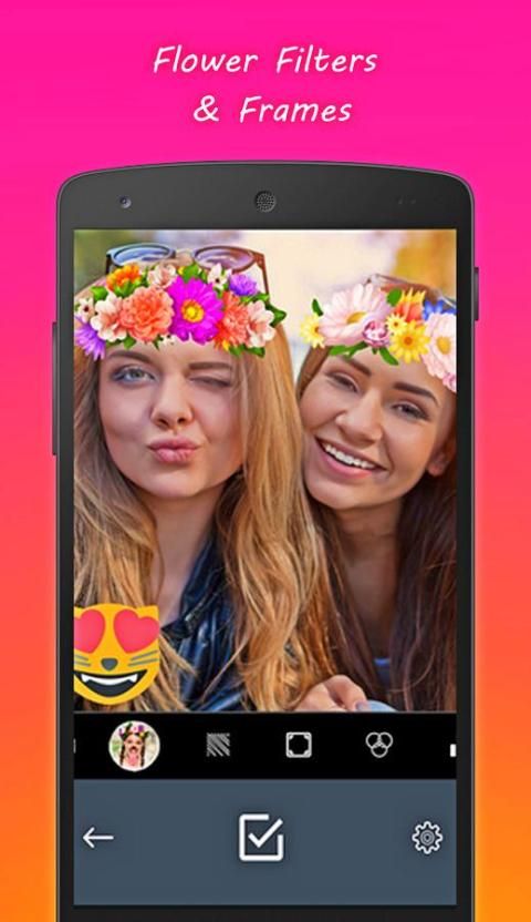 Большие наклейки и Emojis и фильтры вы выбираете сохраняются в изображении, что вы размещаете они будут одинаковыми на Android и iPhone с Face Camera - Привязка фото