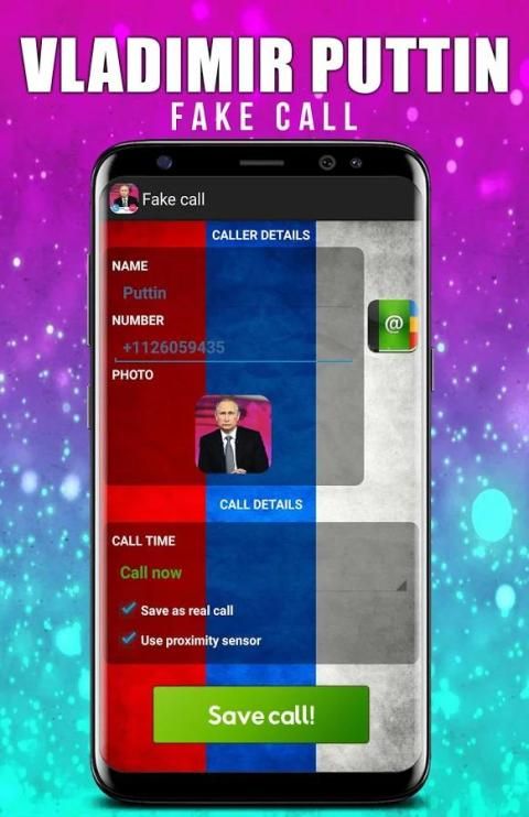 Вы хотите, чтобы шалость своих друзей ?? Скачать фальшивый звонок от Владимир Паутин и имитировать поддельные звонки от нового президента Владимир Паутин России Страна, или кто-либо другой.