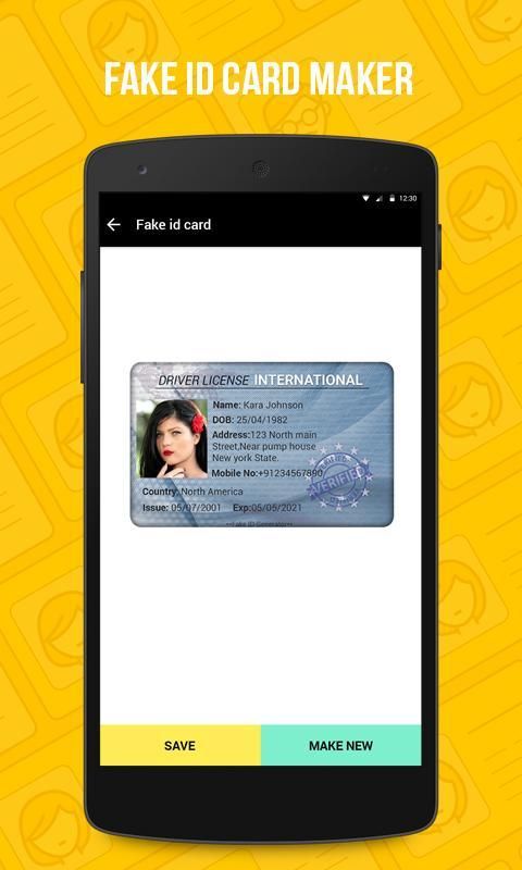 Поддельный генератор ID карты или поддельные ID Card Maker является очень простой в использовании приложение. Это 1-ый проходит через процесс, в котором вас просят 1 выбрать опцию Driving License. Затем заполните детали, которые вы хотите иметь на своем водительском удостоверении и генерировать фальшивое удостоверение личности.