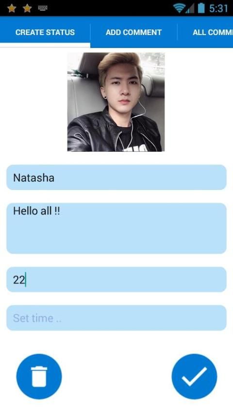 Первая вкладка позволяет создавать поддельный статус: вы можете настроить свой аватар, отправляя имя статуса, номер или имя, как, время, чтобы получить возможность отправлять статус.