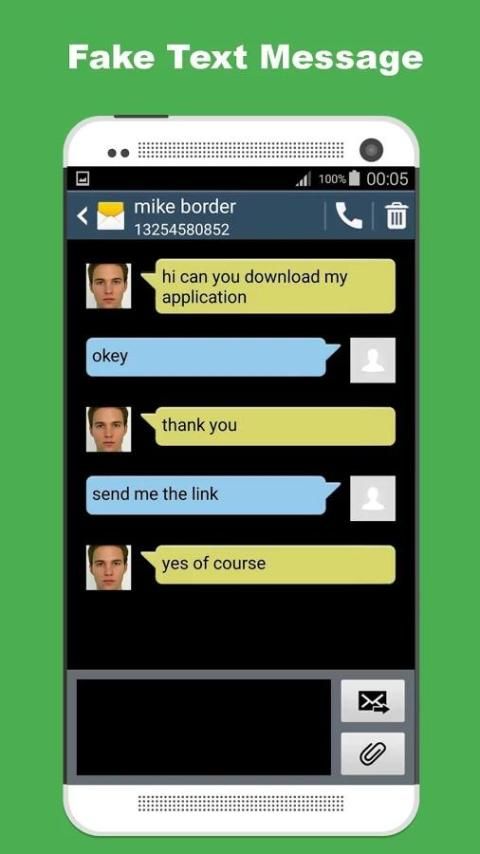 заполнения поля, как имя, номер телефона, а также сообщения и выбрал время, чтобы получить фальшивое сообщение и не забудьте изображение для быть реальным