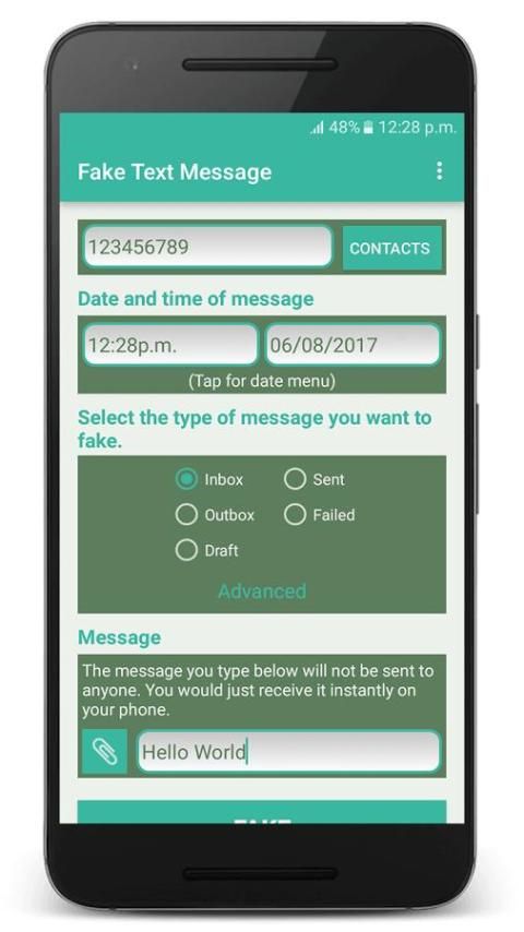 «Фиктивный текстовое сообщение» позволяет получать поддельные текстовые сообщения от кого вы хотите! Trick ваших друзей и заставить их поверить, что вы получили сообщение своей мечты.
