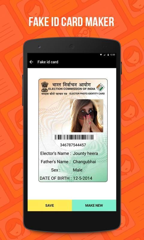 Это розыгрыши App. Поддельные ID Card Maker или Поддельный ID генератора для Избиратель карты или избирательная карта ваш ответ на рейтинг ваших друзей, полагая, что у вас уже есть удостоверение личности избирателя. Если вы когда-нибудь чувствовали необходимость иметь поддельное удостоверение личности, то Поддельные избиратель ID Card Maker или Поддельный ID Generator ваше желание выполнено.