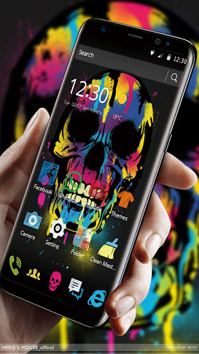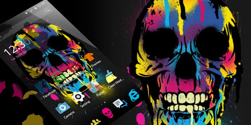 -😍 Free Fancy (Fantasy) Красочный граффити Theme череп, предназначенный для пользователей Launcher. Удивительные прохладные 3D-эффекты перехода и технологии позволят вам восхищаться.