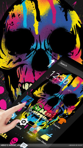 Однократный красочный граффитический череп тема с 3D-виджетом погоды и виджет 3D Clock Ваш телефон круто. Эта тема черепа граффити действительна для большинства моделей телефонов Android.