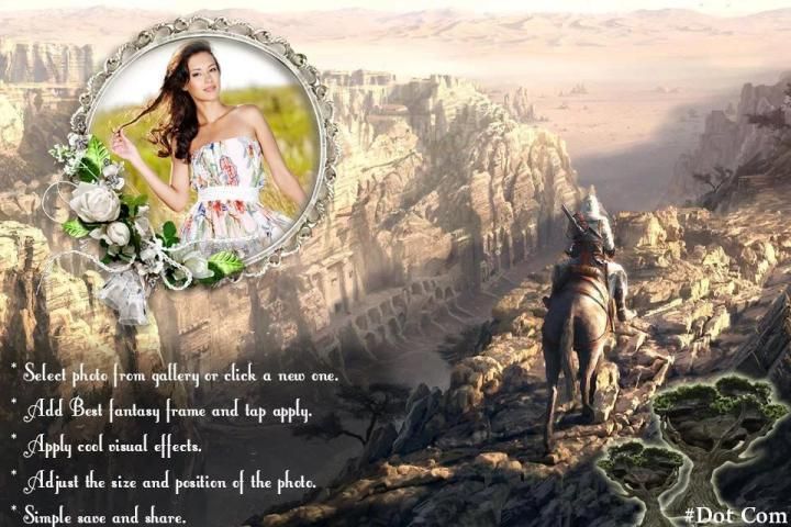 Фэнтези фоторамки приложение принимает вас в сюрреалистический мир искусства, давая вашим фотографиям потрясающий вид. С фантазией фоторамки вы могли почувствовать магию панорамный на фотографиях, украшая их с этих невероятно удивительных произведений искусства. Ткачество энергичные фантазии в красивой фантазией это удивительное приложение предлагает фантастические фото фоны. Ничто не может сравниться с внушающих благоговение пейзажей.