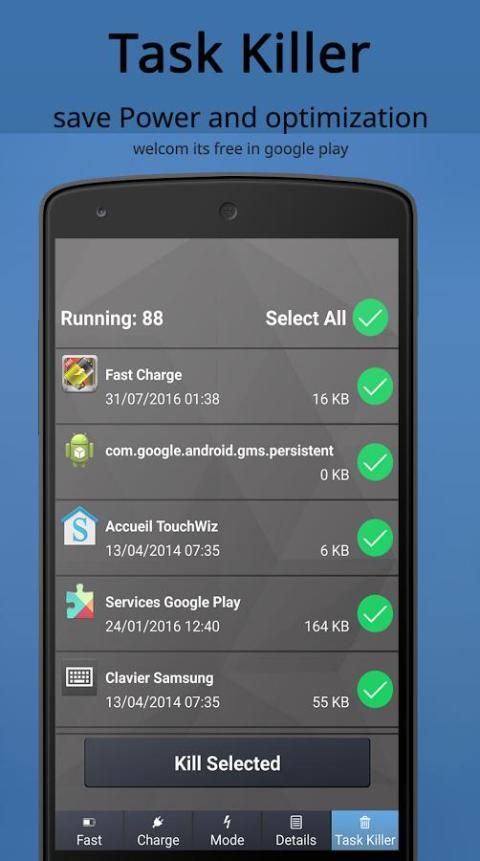 • закрывает все услуги, которые на самом деле потребляют аккумулятор быстро помощью всего одним нажатием на экране
