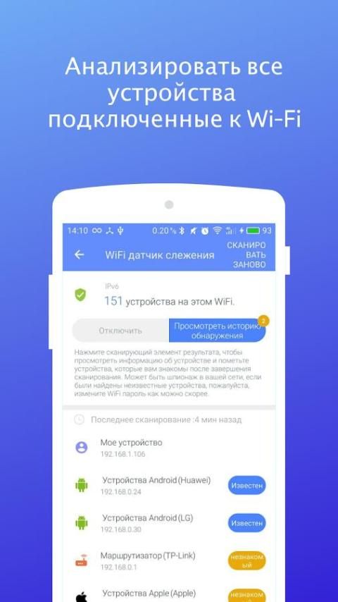 Контролируйте все устройства, подключенные по Wi-Fi точке доступа, в том числе телефон Android, iPhone / Ipad, Windows компьютер / ноутбук. Вы можете оценить уровень безопасности, обнаружение вторжений и устранение проблем в сети.
