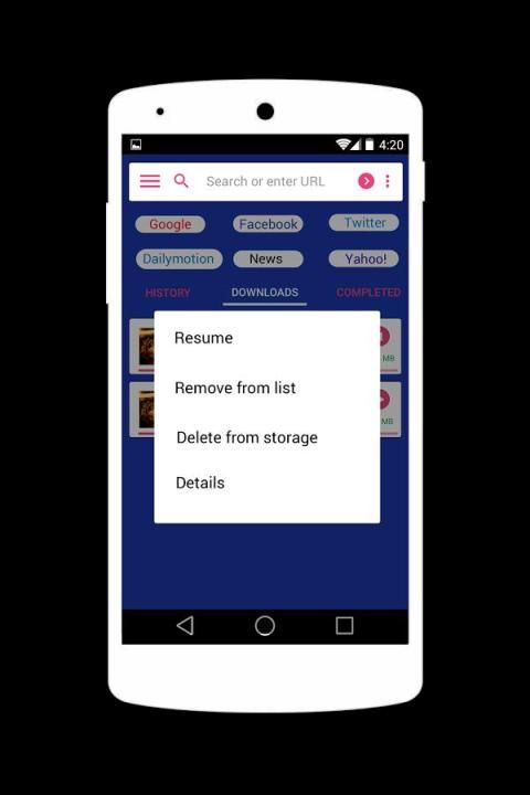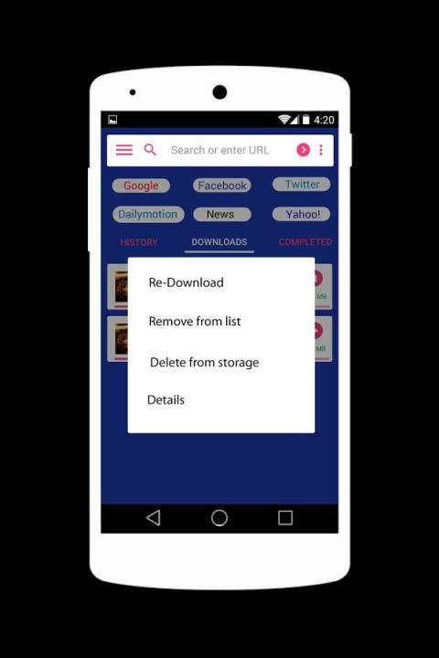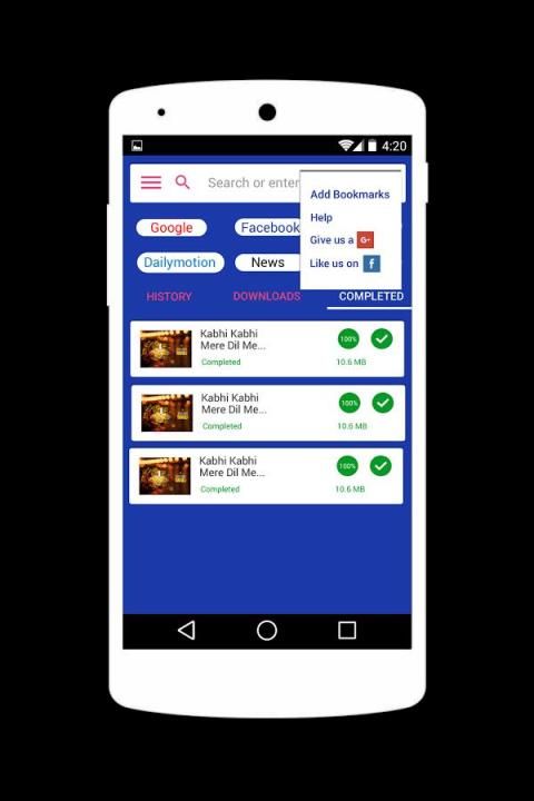 - Вы можете легко получить доступ все ваши любимые сайты, как Facebook ™, Vimeo ™, Dailymotion ™, LiveLeak ™, Metcafe ™ и других только с одним касанием.