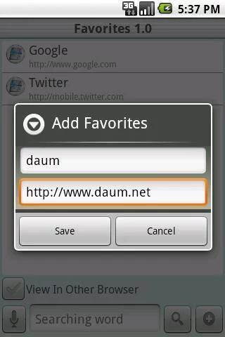 Favorites...Browser Favorite feature is the primary Browser The input of the main screen search on Google to search.