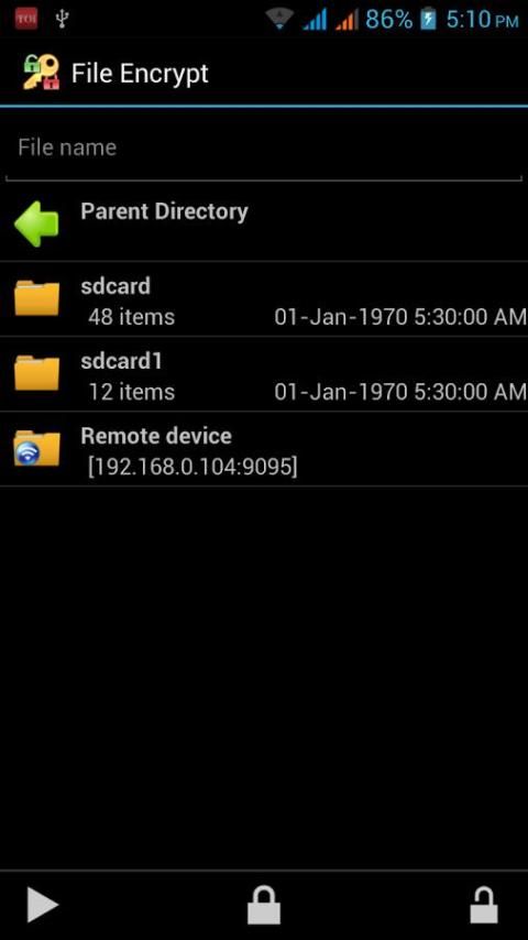 6. Вариант для шифрования / дешифрования все файлы в папке (долго нажмите папку). То же ключ будет использоваться для файлов в папке для этой операции. Файлы в вложенных папок не будут обработаны (поддерживается в премиум версии)