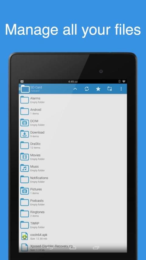 File Explorer & App Manager позволяет пользователям перемещать, копировать, удалять, открывать файлы и перемещаться по папкам.